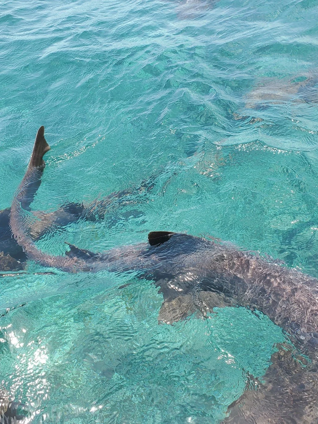 Then came the thrill: Shark Ray Alley. The moment we anchored, nurse sharks and stingrays glided toward the boat, drawn by the roar of the boat engine, anticipation of food that was not coming. At first, it wasn't very safe, but once I slipped in, it became surreal. Gentle creatures moving gracefully around us, completely unbothered by our presence. We even stopped at a sunken barge, now a thriving home for marine life, its rusty frame cloaked in coral and swarming with fish.